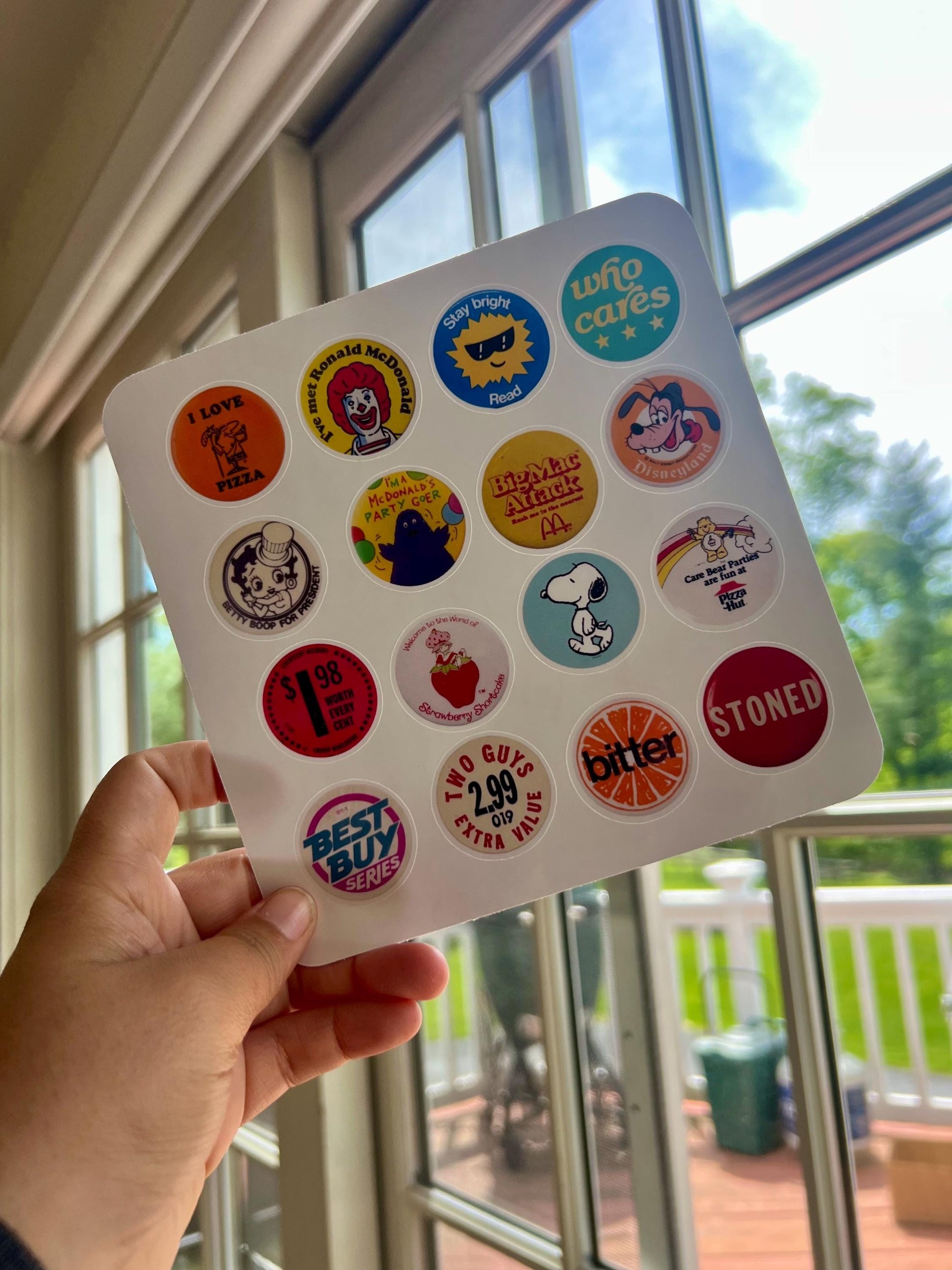 Step into a time warp of pure nostalgia with this retro-inspired sticker sheet! Packed with vibrant designs, playful slogans, and vintage-style icons (think Ronald, Snoopy, Strawberry Shortcake, and classic 90s pricing graphics), this sheet is perfect for junk journaling, scrapbooking, or decorating your planner and tech.