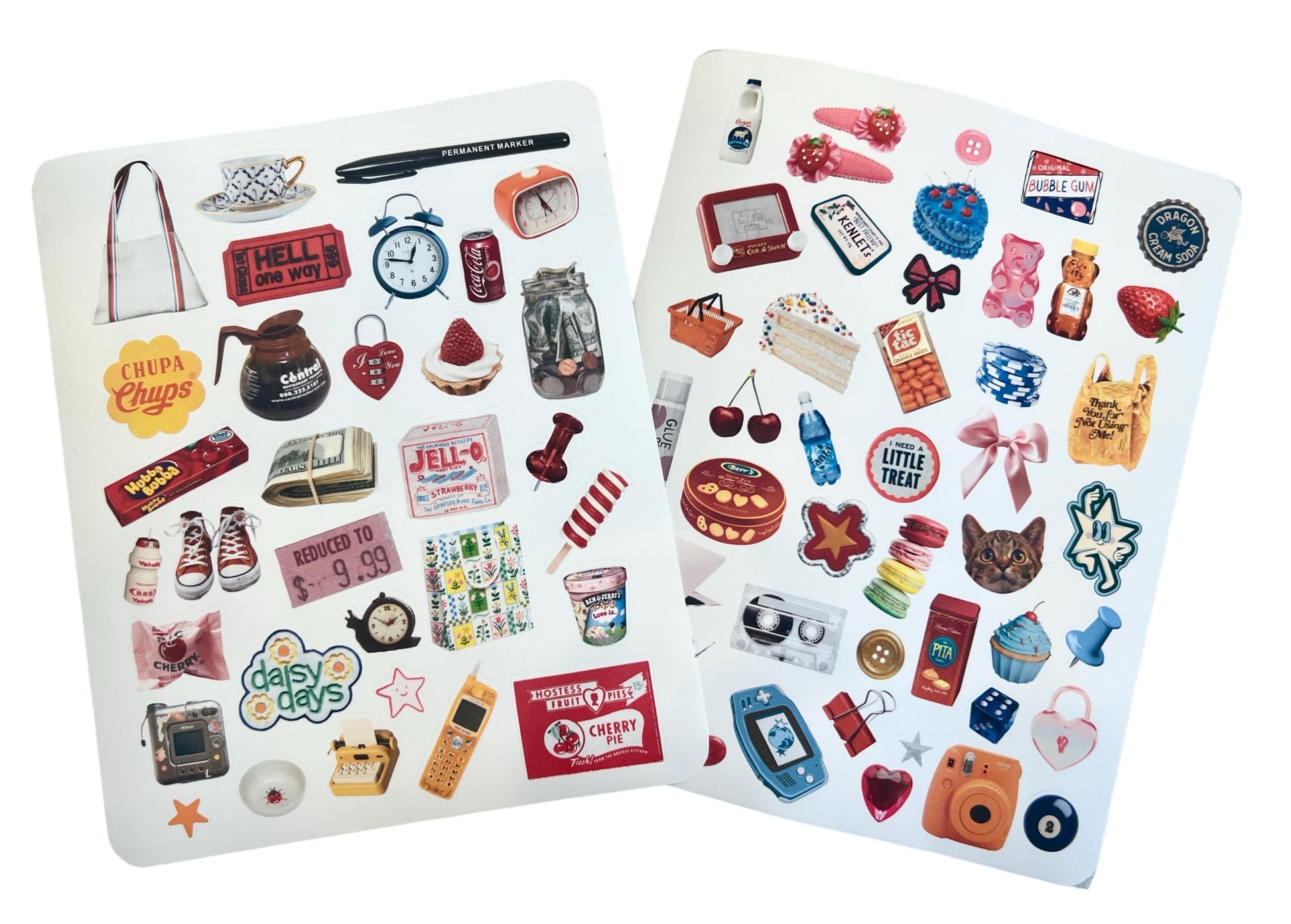 Whether you’re into nostalgic vibes or just love a bit of visual chaos, this sticker sheet is here to brighten your pages!